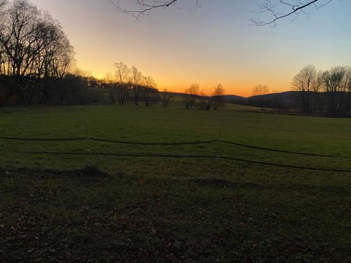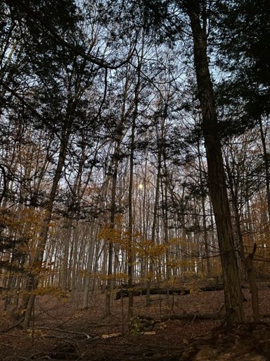 mile around woods, sunset, moonrise