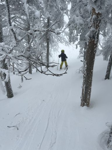 What a special treat to ski fresh pow woods with Everett