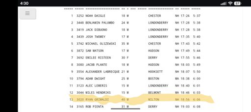 Londonderry, New HampshireRun