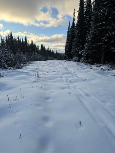 Sun Peaks McGillivray Lake legal outing. Temperatures in the teens. Animal tracks are better than streamed videos