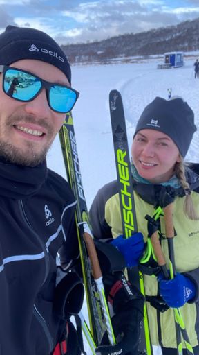 Затестили лыжи жены, едут) в отличие от меня))